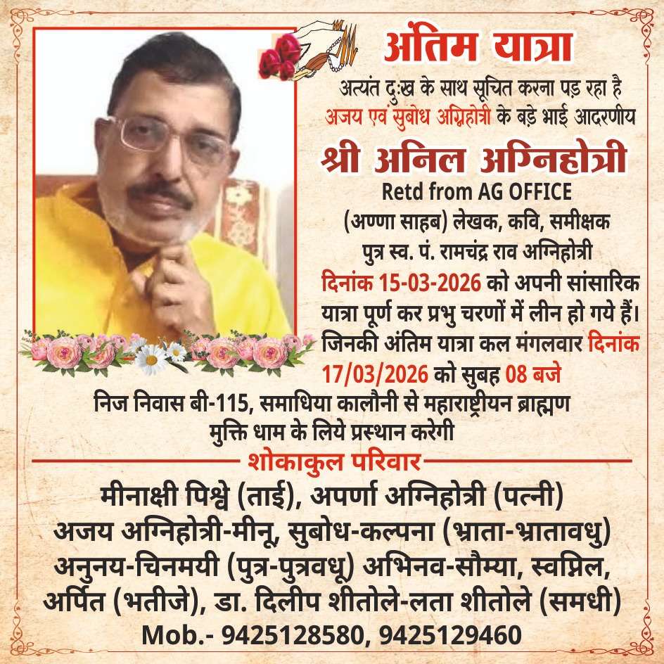 ग्वालियर Pradeep Jaiswal March 16, 2026 Share this: Click to share on X (Opens in new window) X Click to share on LinkedIn (Opens in new window) LinkedIn Click to share on Facebook (Opens in new window) Facebook Click to share on WhatsApp (Opens in new window) WhatsApp Related Pradeep Jaiswal Political Bureau Chief