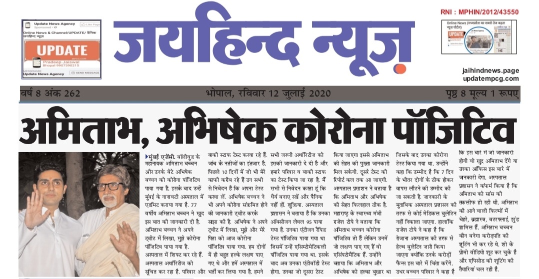 पढ़ते रहिए… भोपाल से प्रकाशित हिंदी दैनिक… जयहिंद न्यूज़ Pradeep Jaiswal July 12, 2020 Share this:Click to share on Twitter (Opens in new window)Click to share on LinkedIn (Opens in new window)Click to share on Facebook (Opens in new window)Click to share on WhatsApp (Opens in new window) Related Pradeep Jaiswal Political Bureau Chief