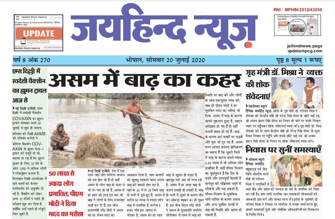 पढ़ते रहिए… भोपाल से प्रकाशित हिंदी दैनिक… जयहिंद न्यूज़ Pradeep Jaiswal July 20, 2020 Share this:Click to share on Twitter (Opens in new window)Click to share on LinkedIn (Opens in new window)Click to share on Facebook (Opens in new window)Click to share on WhatsApp (Opens in new window) Related Pradeep Jaiswal Political Bureau Chief