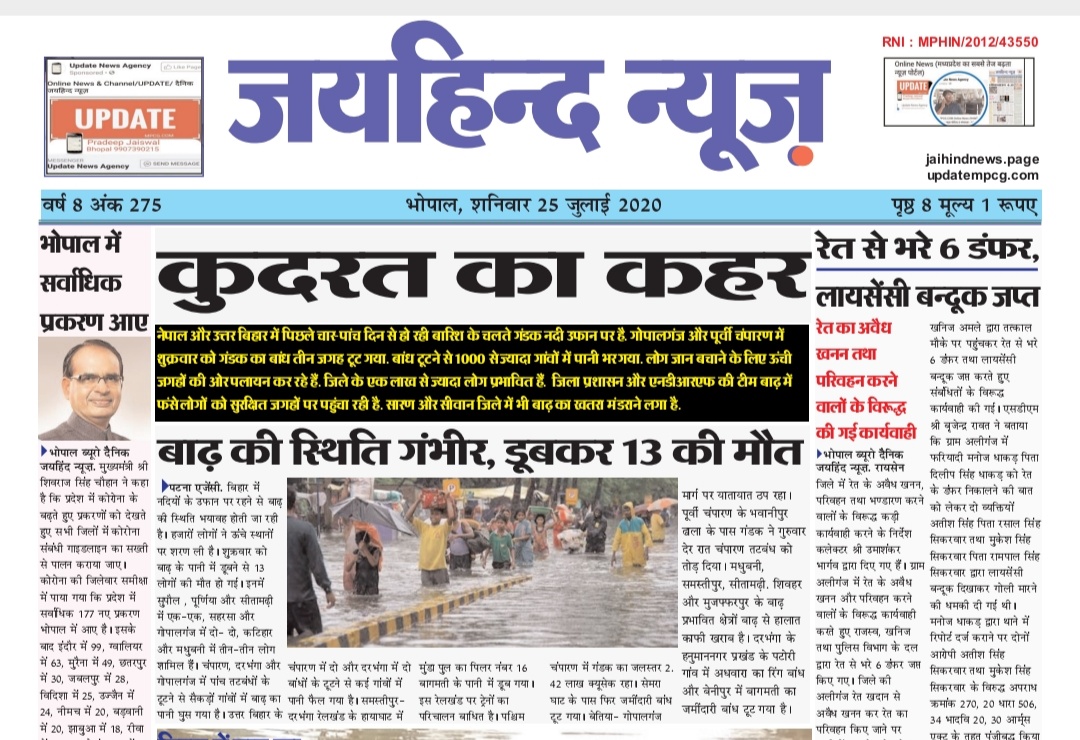 पढ़ते रहिए… भोपाल से प्रकाशित हिंदी दैनिक… जयहिंद न्यूज़ Pradeep Jaiswal July 25, 2020 Share this:Click to share on Twitter (Opens in new window)Click to share on LinkedIn (Opens in new window)Click to share on Facebook (Opens in new window)Click to share on WhatsApp (Opens in new window) Related Pradeep Jaiswal Political Bureau Chief