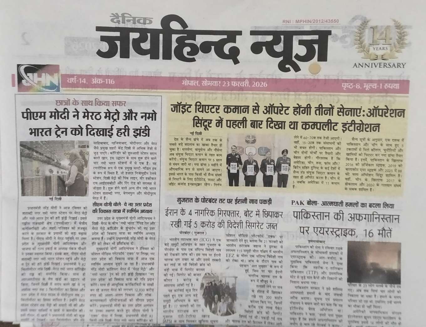 JAIHIND NEWS Hindi Daily Bhopal Pradeep Jaiswal February 23, 2026 Share this: Click to share on X (Opens in new window) X Click to share on LinkedIn (Opens in new window) LinkedIn Click to share on Facebook (Opens in new window) Facebook Click to share on WhatsApp (Opens in new window) WhatsApp Related Pradeep Jaiswal Political Bureau Chief
