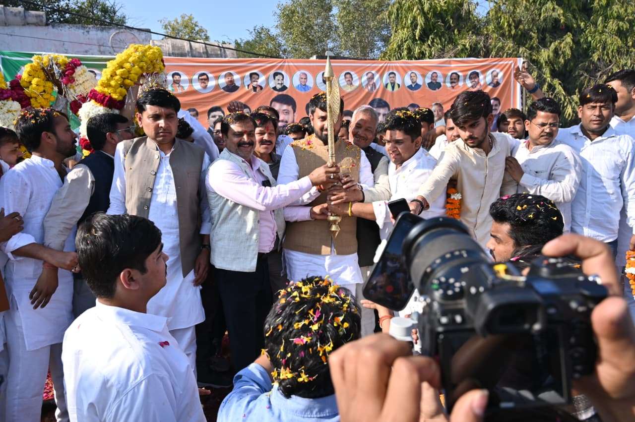 राहुल दुबे द्वारा भारतीय जनता युवा मोर्चा प्रदेशाध्यक्ष श्याम टेलर का भव्य स्वागत किया गया