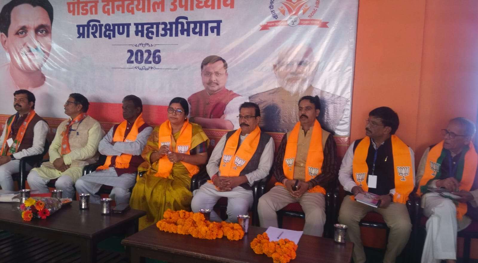 रायसेन। भाजपा कार्यालय रयसेन में गुरुवार को पंडित दीनदयाल उपाध्याय प्रशिक्षण महा अभियान 2026 को लेकर जिला स्तरीय कार्यशाला का आयोजन किया गया जिसका शुभारंभ पंडित दीनदयाल उपाध्याय,श्यामा प्रसाद मुखर्जी एवं भारत माता के छाया चित्रों के समक्ष दीप जलाकर उन्हें पुष्प अर्पित करते हुए किया गया इसके पश्चात वंदे मातरम् गान का सामूहिक गायन किया गया। इस मौके पर सर्वप्रथम भाजपा जिला अध्यक्ष राकेश शर्मा ने स्वागत भाषण देते हुए प्रशिक्षण के बारे में अपने विचार साझा किए।इसके साथ ही मंच पर आशीन मुख्य अतिथियो का अंग वस्त्र से स्वागत किया गया। इस मौके पर आयोजित प्रशिक्षण कार्यशाला में सारगर्वित एवं स्पष्टवादी विचार व्यक्त करते हुए भाजपा संगठन के भोपाल संभाग के प्रभारी एवं विधायक तेज बहादुर सिंह ने कार्यक्रम में मौजूद पदाधिकारीयो को संबोधित करते हुए कहा कि आज हम यहां पंडित दीनदयाल उपाध्याय प्रशिक्षण महाअभियान 2026 की शुरुआत के लिए प्रशिक्षण कार्यशाला के लिए एकत्रित हुए हैं, इस प्रकार के कार्यक्रम हो या पार्टी संगठन का कार्य हो सभी में पार्टी के पदाधिकारीयो जिसे जो दायित्व मिले उसका ईमानदारी से निर्वहन करना चाहिए। उन्होंने कहा कि पदाधिकारी, कार्यकर्ता यह बात कान खोल कर सुनने ले कि पार्टी संगठन के प्रति किसी प्रकार की कोताही अब बर्दाश्त नहीं की जाएगी, कार्यशालाएं हो या संगठन की बैठक हो सभी में अपेक्षित पदाधिकारीयो को आना जरूरी है, इसके साथ ही पार्टी के जिम्मेदार पदाधिकारीयो के निर्देशों का अक्षरसा पालन होना चाहिए। श्री सिंह ने स्पष्ट रूप से कहा कि जो पदाधिकारी नहीं आ पाए हैं और जो आना नहीं चाहते वह अपने आप में स्वयं ही अपने को पृथक मानले । इस प्रकार की शख्त हिदायत भोपाल संभाग प्रभारी एवं प्रखर वक्ता तेज बहादुर सिंह ने कार्यक्रम को संबोधित करते हुए दी । इस अवसर पर उन्होंने पंडित दीनदयाल उपाध्याय प्रशिक्षण महावीर 2026 को लेकर विस्तार से पार्टी के पदाधिकारीयो को अवगत कराया। प्रशिक्षण कार्यशाला दो सत्रों में प्रशिक्षण आयोजित की गई।जिसमें वक्ता के रूप में जिला भाजपा संगठन की प्रभारी एवं भाजपा की प्रदेश मंत्री सुश्री राजो मालवीया, कमलजी राजपाल, राजेंद्र सिंह ठकुर ने प्रशिक्षण की गतिविधियों एवं पंच परिवर्तन आदि के बारे में विस्तार से पदाधिकारीयो को बताया गया । इस मौके पर कार्यक्रम में मौजूद प्रदेश भाजपा उपाध्यक्ष एवं सांची विधायक डॉक्टर प्रभु राम चौधरी ने भी कार्यशाला में प्रशिक्षण को लेकर अपने विचार रखें। इस मौके पर अतिथियों ने पदाधिकारीयो के साथ बैठकर एल ई डी के माध्यम से प्रशिक्षण संबंधी लाइव प्रसारण बिंदुवार समझा। आगामी समय में पंडित दीनदयाल उपाध्याय प्रशिक्षण महाभिया