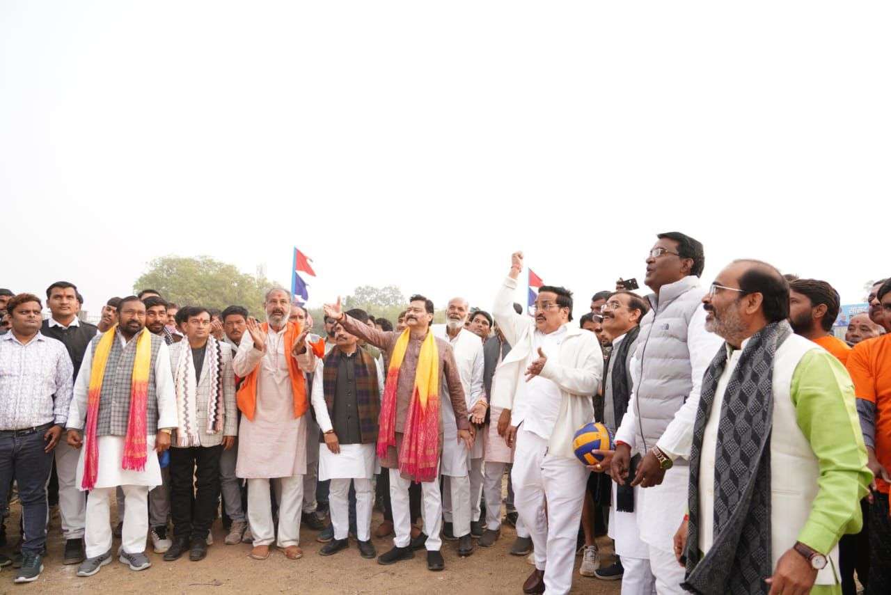 केंद्रीय जल शक्ति मंत्री सीआर पाटील ने अपने संबोधन की शुरुआत में कहा कि विष्णु दत्त शर्मा जी ऐसे ऊर्जावान नेता हैं जिन्होंने अपने अध्यक्षी कार्यकाल के दौरान न सिर्फ मध्य प्रदेश में बंपर जीत दिलवा कर सरकार बनवाईं बल्कि लोकसभा चुनाव में भी 29 में से पूरी की पूरी 29 सीटे जितवा करके कांग्रेस का सफाया किया है, आपने कहा केन बेतवा लिंक परियोजना जो कि बुंदेलखंड अंचल की एक बहुत बड़ी महत्वाकांक्षी योजना है इस योजना को 2030 तक पूर्ण कर लिया जाएगा तथा इस योजना के माध्यम से किसानों को बहुत लाभ होगा जिससे उनके जीवन में खुशहाली एवं समृद्धि आएगी, आपने कहा यह वही स्थल है जहां हमारे प्रधानमंत्री जी ने केंद्र परियोजना की आधारशिला रखी थी और आज वह दूसरी बार खजुराहो आए हैं यहां आकर उन्हें बहुत ही सुखद अनुभूति हुई क्योंकि सांसद खेल महोत्सव के माध्यम से खजुराहो लोकसभा क्षेत्र में एक लाख से ऊपर खिलाड़ियों ने रजिस्ट्रेशन कराकर अपनी सहभागिता सुनिश्चित की है जिससे हमारे देश के प्रधानमंत्री नरेंद्र मोदी जी का जो सपना है कि हम ओलंपिक में और विश्व के अन्य प्रमुख अंतरराष्ट्रीय स्तर के खेलो के माध्यम से अधिक से अधिक पदक जीत सकें वह हमारे गांव देहात से खिलाड़ी निकल कर प्रधानमंत्री जी का सपना साकार करेंगे ।
